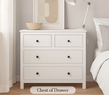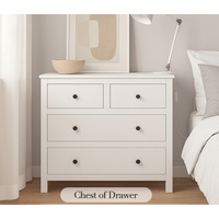 This bedside table is designed with four drawers for ample storage space and comes complete with full extension metal runners. It is finished in white and has black handles. This range's eco-friendly painting materials ensure a healthy and safe lifestyle for you and your family. This painted finished bedside table is made of high-quality MDF and is built to last.